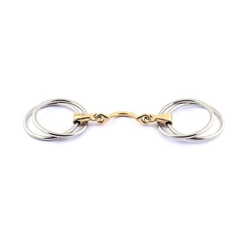 Filetto con quattro anelli di diametro 70 mm e cannone in rame dolce da 17 mm con collo d'oca per passaggio lingua.
