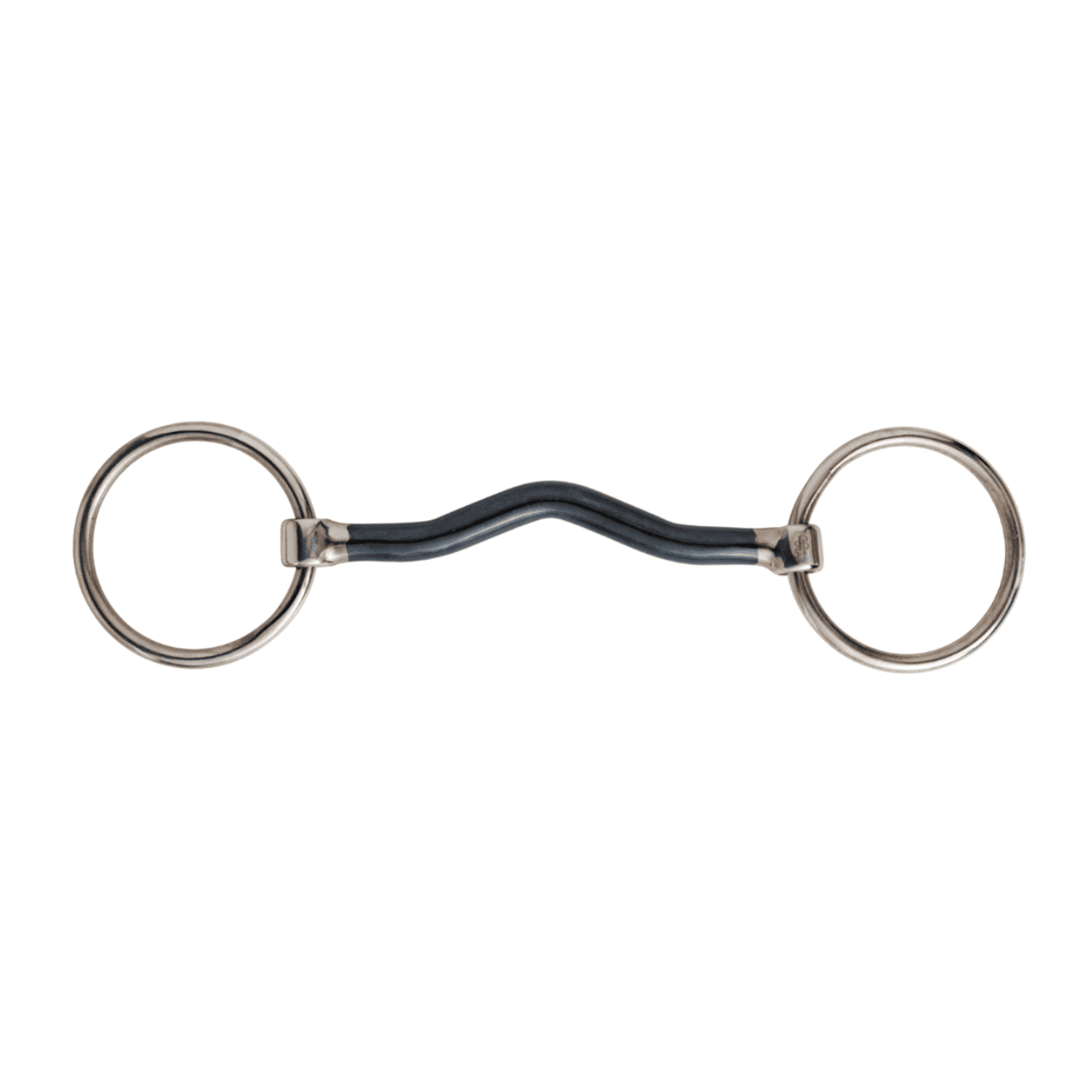 Il bocchino in ferro dolce blu si ossida facilmente per creare calore con un sapore dolce che aiuta l'accettazione del morso e incoraggia la salivazione. Si prega di notare che il colore blu sbiadirà con l'uso.