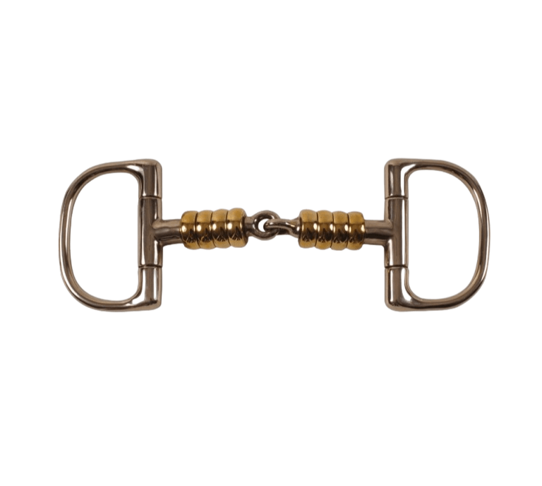 Filetto a D snodato in acciaio inox con imboccatura di 23 mm e anelli in rame.