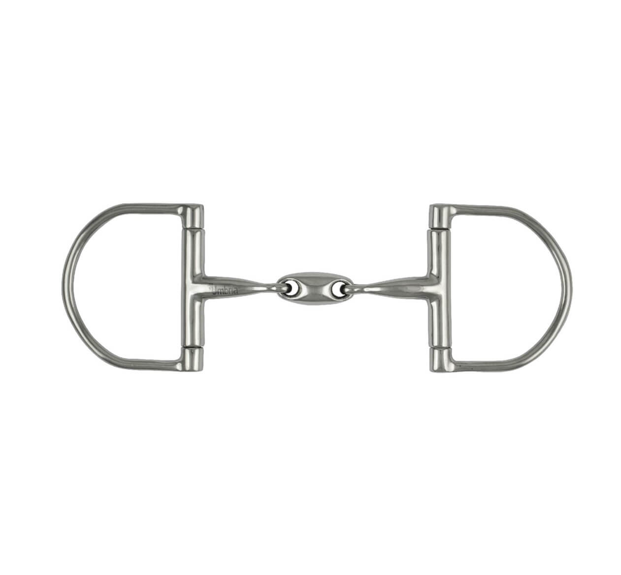Filetto a D spezzato in 3 con oliva centrale in acciaio inox.