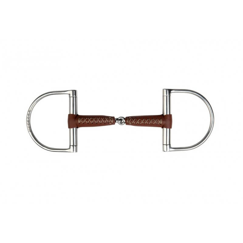 Filetto a D spezzato ricoperto in acciaio inox rivestito in pelle.