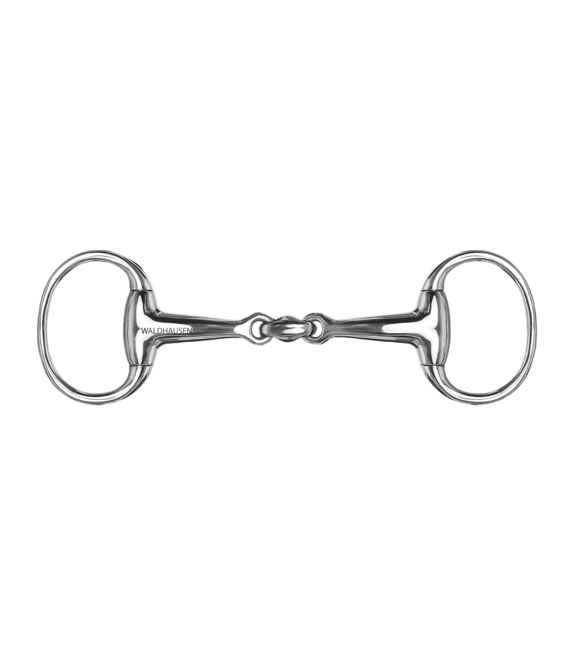 Filetto a oliva pieno Waldhausen spezzato in tre in acciaio inossidabile con bocchino spesso 18 mm e diametro anelli da 7 cm.