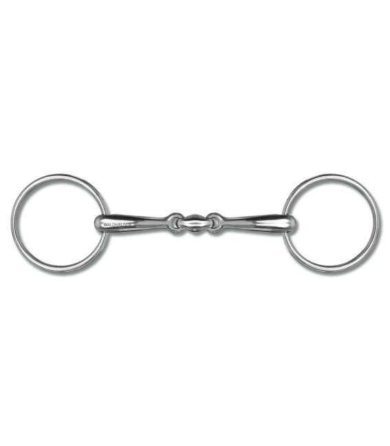 Filetto ad anelli (diametro 7 cm) con doppio snodo con oliva, pieno, in acciaio inox.