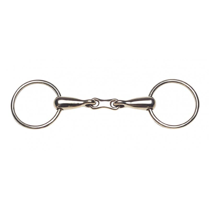 Filetto ad anelli a doppio snodo con parte centrale piatta, adatta ai cavalli con palato stretto.