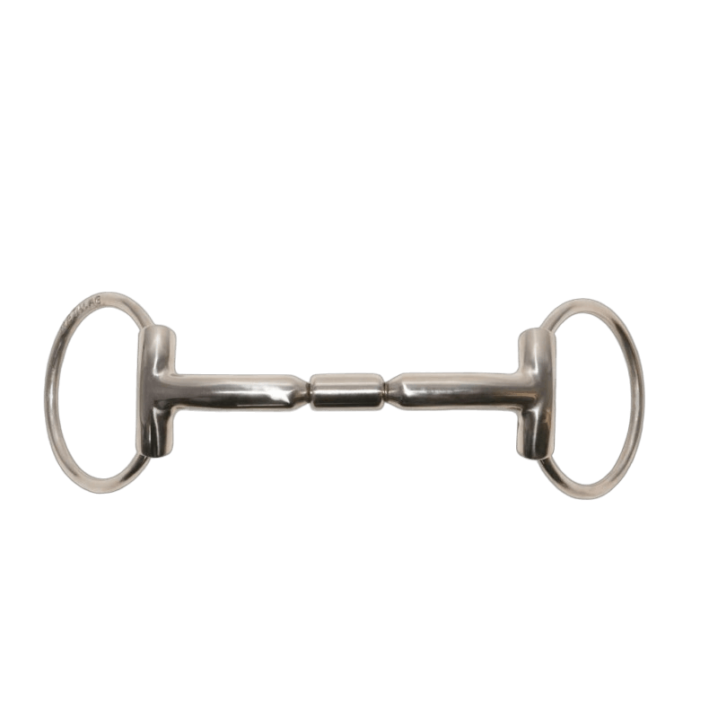 Filetto ad anelli in acciaio inossidabile con bocchino dritto 14 mm e protezione per l'angolo della bocca.