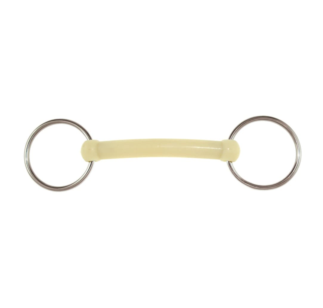 Filetto ad anelli intero e flessibile di Happy Mouth Bit realizzato in acciaio inox con anelli di diametro 65 mm.