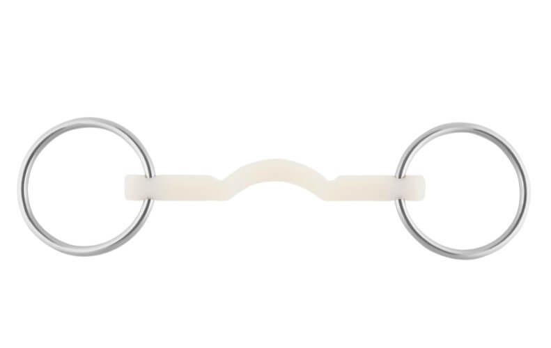 Filetto ad anelli con canna rigida a ponte Nathe. Si adatta all'anatomia della bocca del cavallo, per una migliore ripartizione della pressione sulla lingua. Pezzo boccale flessibile.