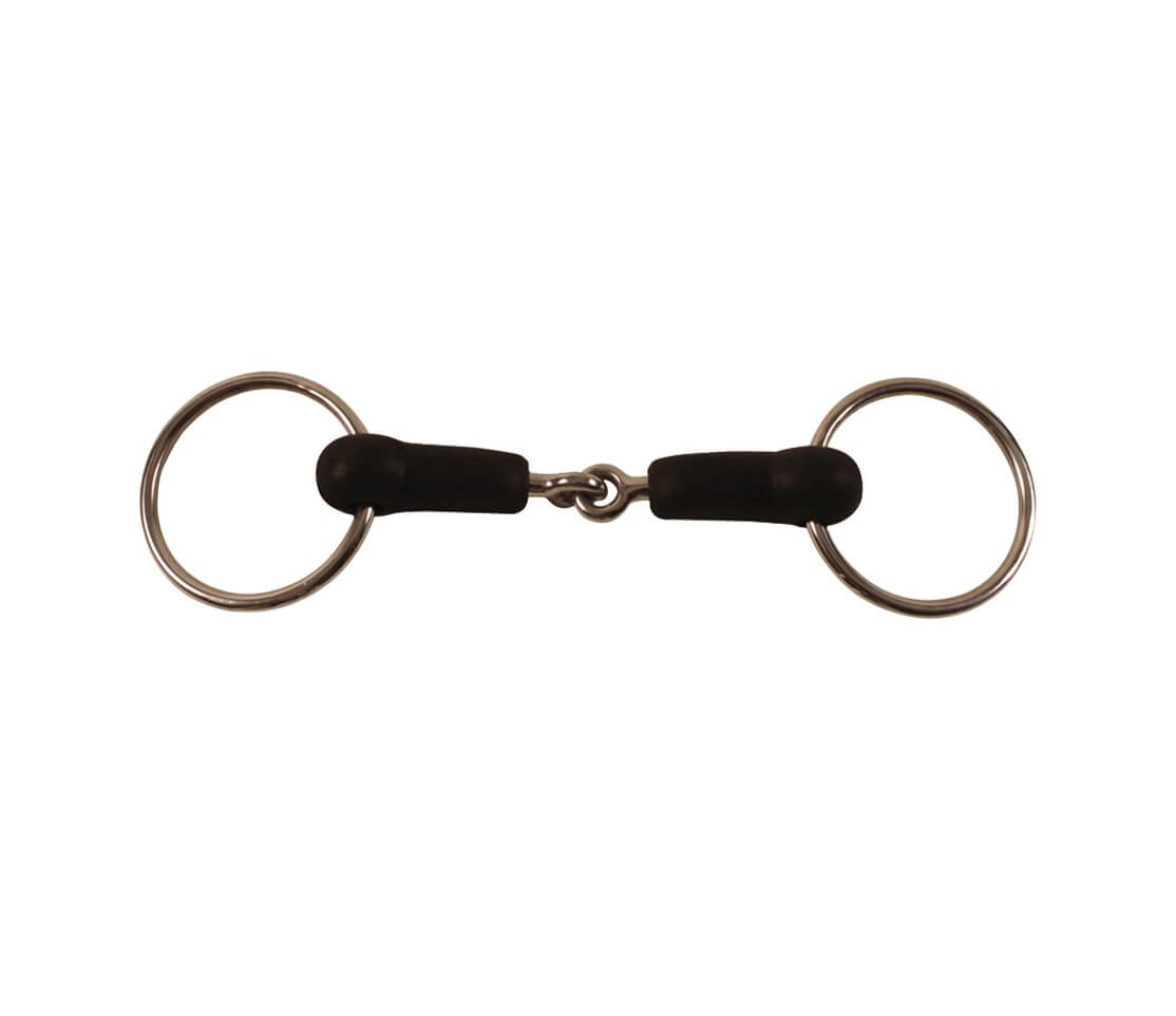 Filetto ad anelli inox, snodato, con cannone ricoperto in gomma.