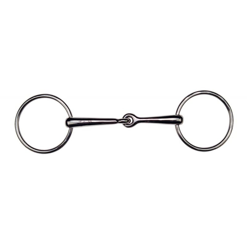 Filetto ad anelli spezzato pieno con bocchino sottile realizzato in acciaio inossidabile.
