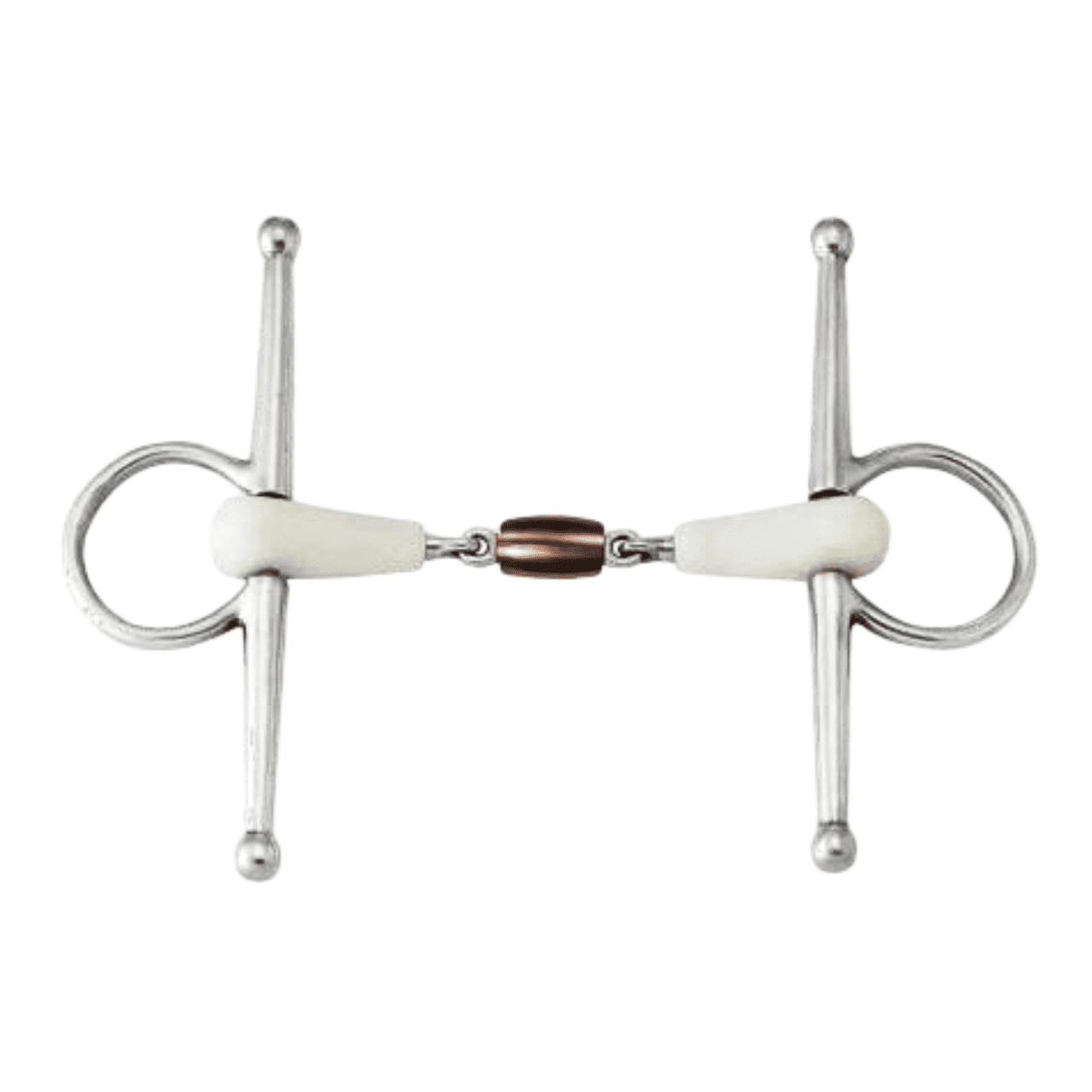 Filetto ad aste Happy Mouth in acciaio inox con cannone snodato e rullo in rame centrale. Imboccatura aromatizzata alla mela.