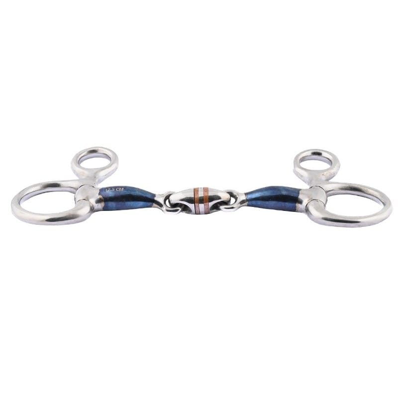 Filetto Baucher Jump In spezzato in tre in acciaio blu con anelli da 45 mm e cannone spesso 16 mm.