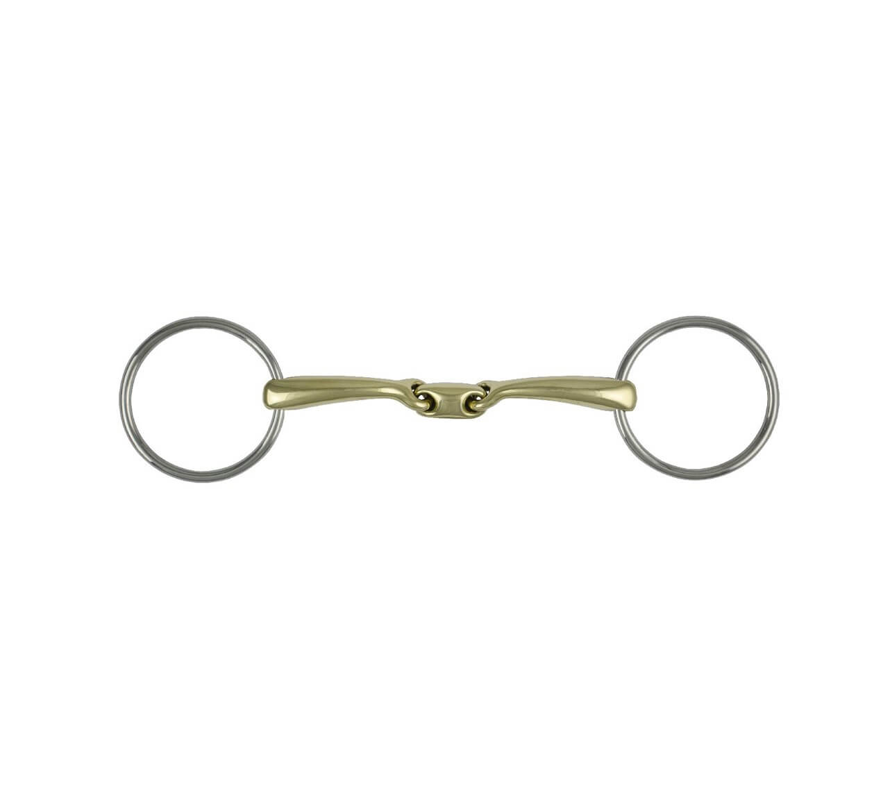Filetto in rame con cannone angolato ed oliva per ottenere un contatto migliore con la lingua del cavallo e con le barre.