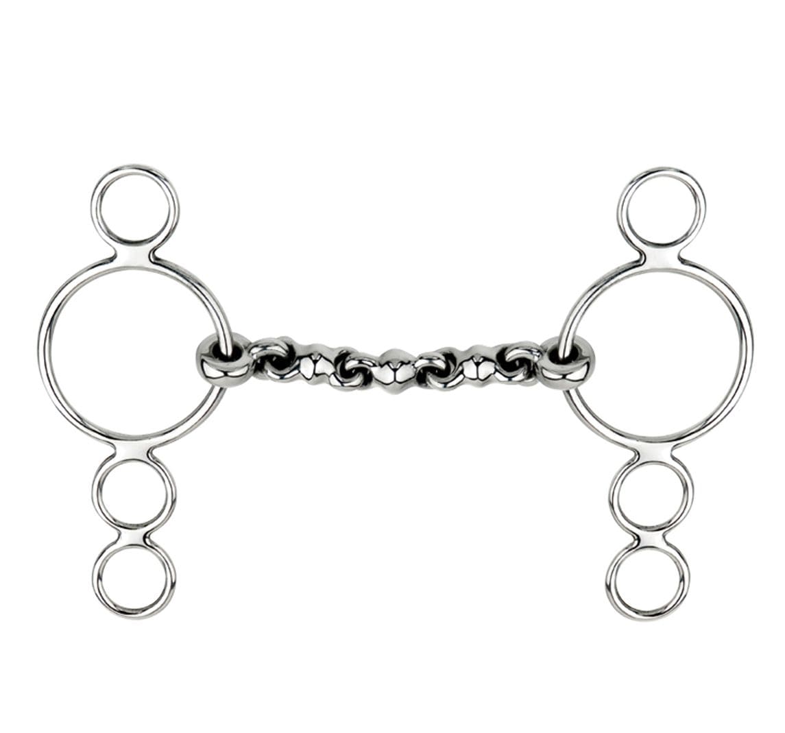 Filetto Pessoa snodato a due chiamate con imboccatura a palline da 19 mm.