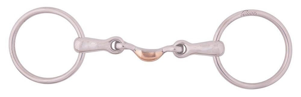 Questo filetto ad anelli sciolto a doppio snodo è realizzato in acciaio inossidabile con una parte in rame nel bocchino.