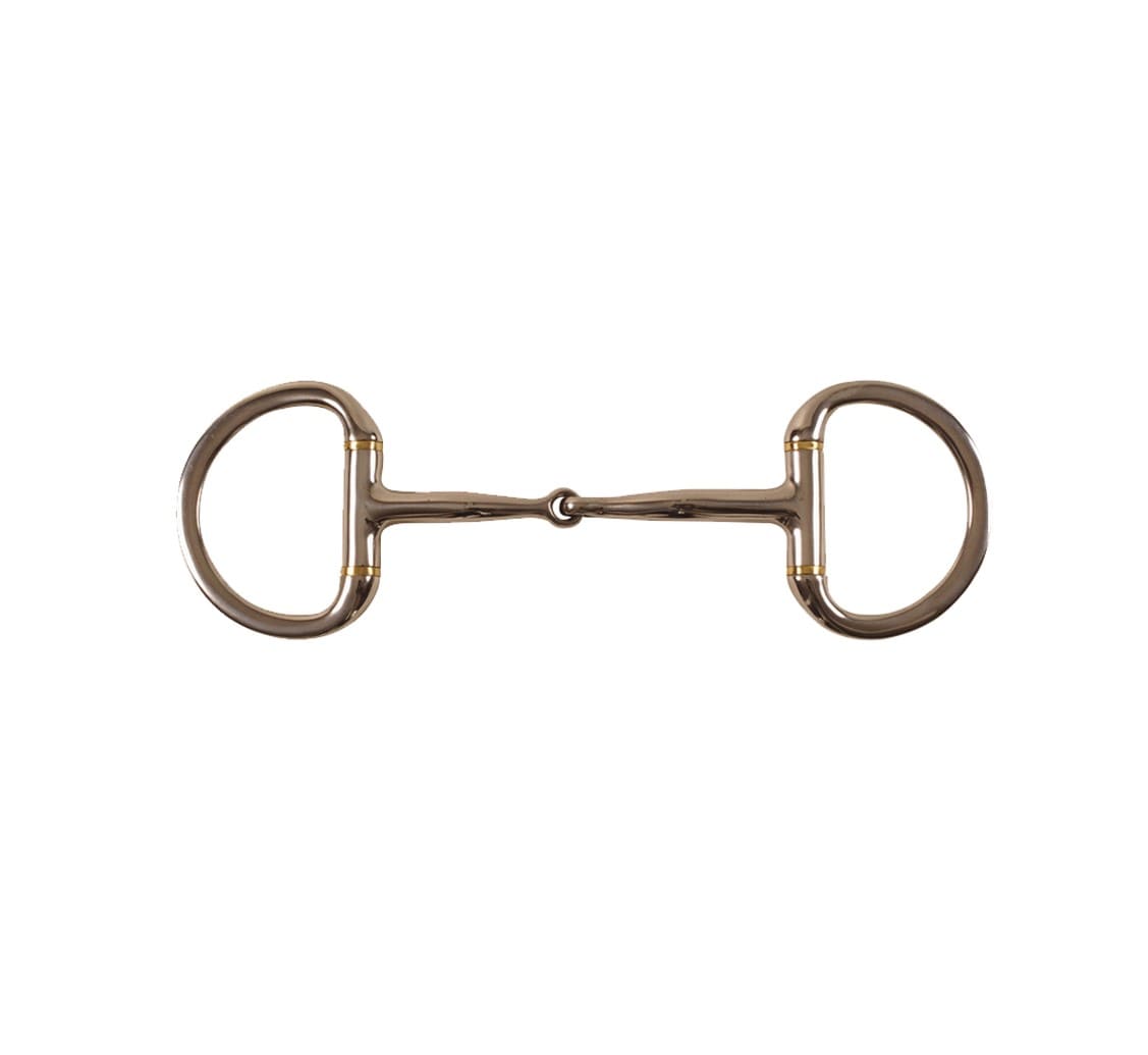 Filetto western a D in acciaio inox con imboccatura con inserti in rame e anelli schiacciati.
