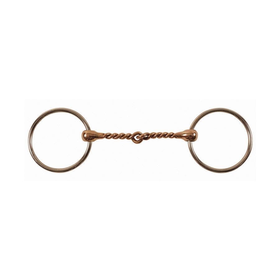 Filetto western ad anelli con imboccatura in rame con torciglione grosso.
