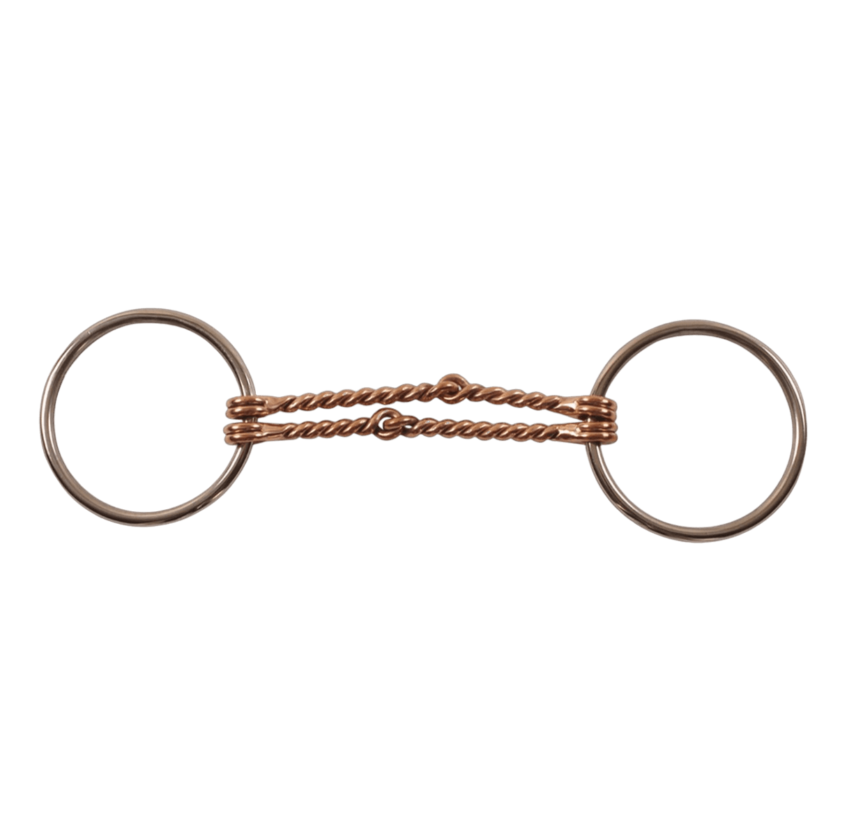 Filetto western ad anelli con imboccatura a doppio torciglione grosso in rame.