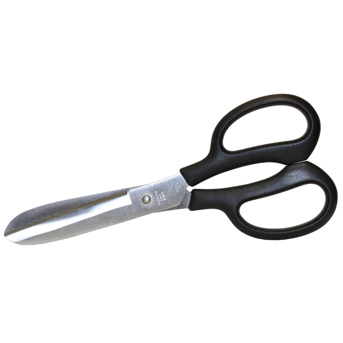 Forbice per coda e criniera in acciaio inox curva con manici in plastica di buona qualità.