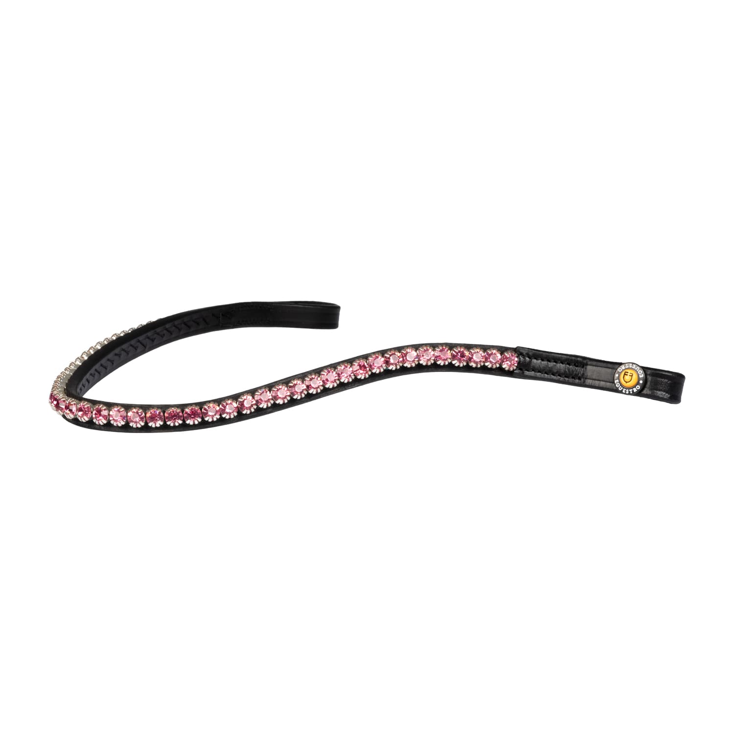 Elegante frontalino Equestro in cuoio nero con strass rosa, perfetto per aggiungere brillantezza e raffinatezza alla tua testiera.