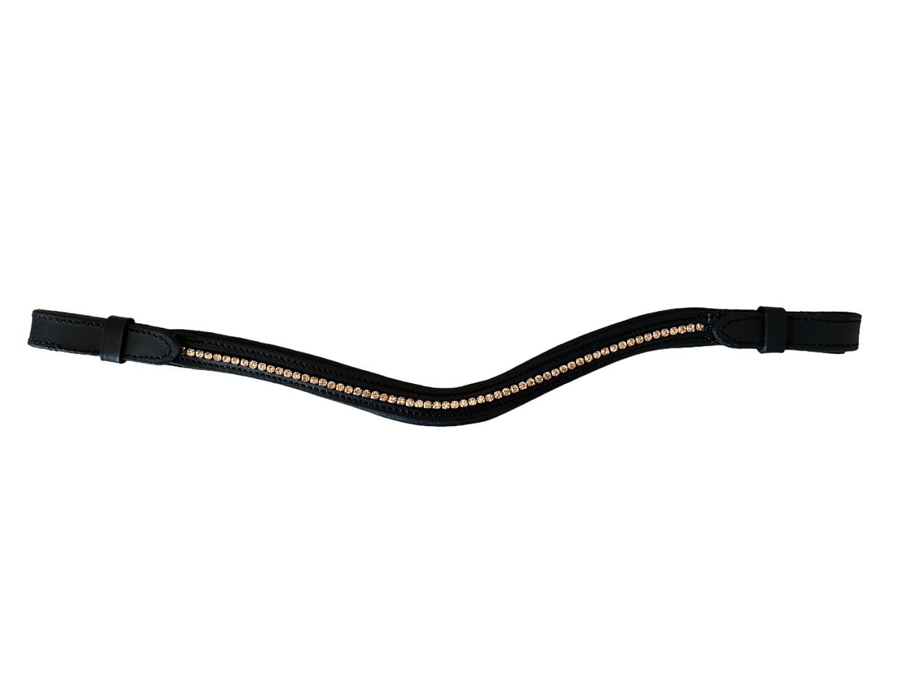 Frontalino fatto a mano in morbida pelle nera con brillantini color rame. Sistema 'easy-on' per posizionare il frontalino in maniera semplice e veloce sulla testiera.