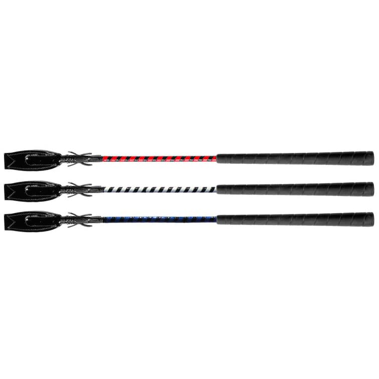 Frustino inglese con impugnatura antiscivolo, rivestimento lucido a spirale bicolore, puntale lucido chiuso.