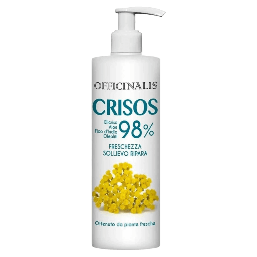Crisos 98% è un gel superattivo naturale con il 98% di estratti freschi naturali, è perfetto in caso di pelle alterata, arrossata.