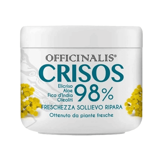 Crisos 98% è un gel superattivo naturale con il 98% di estratti freschi naturali, è perfetto in caso di pelle alterata, arrossata.
