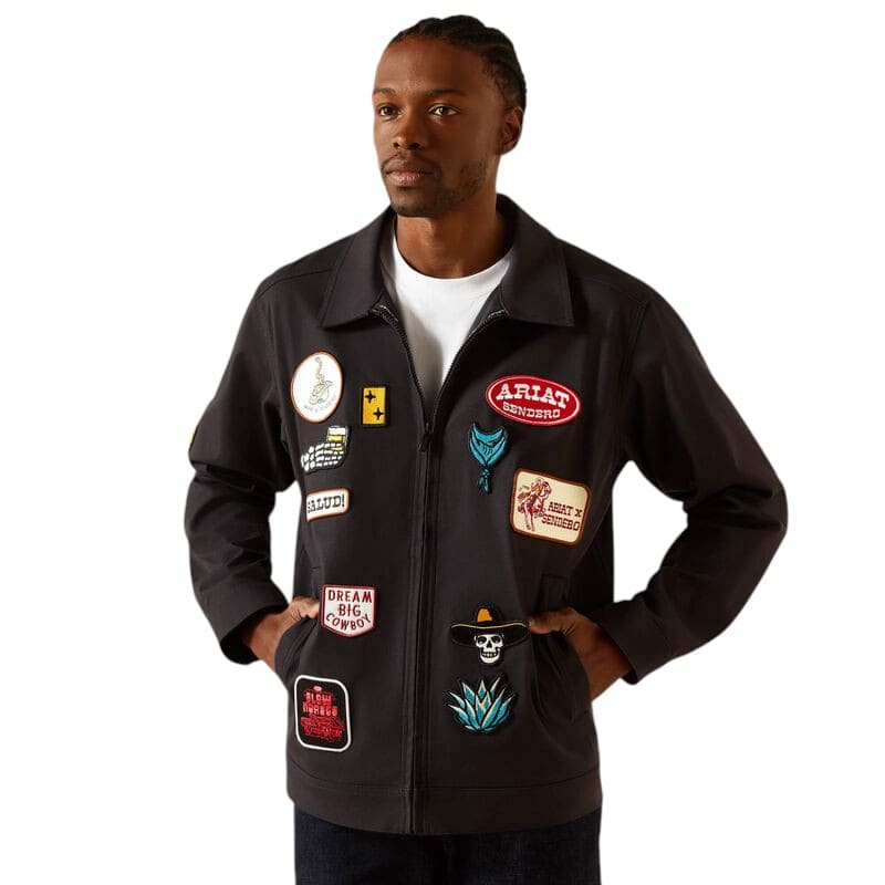 Giacca uomo Ariat in edizione limitata disegnata con il famoso brand texano Sendero. Presenta toppe personalizzate e uno slogan ricamato.