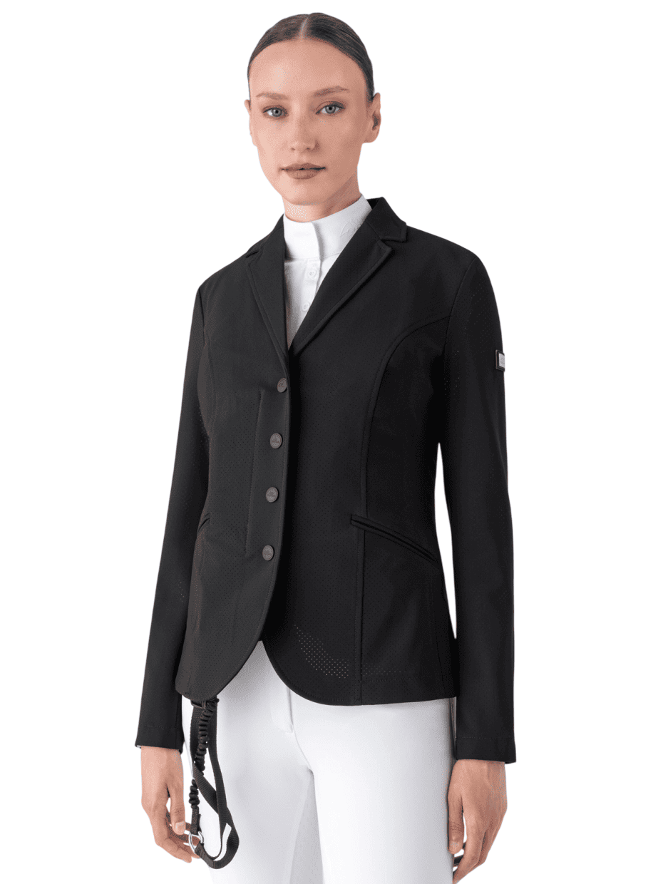 Giacca da competizione Equiline modello Cozyc microforata compatibile con (qualsiasi) gilet airbag da donna.
