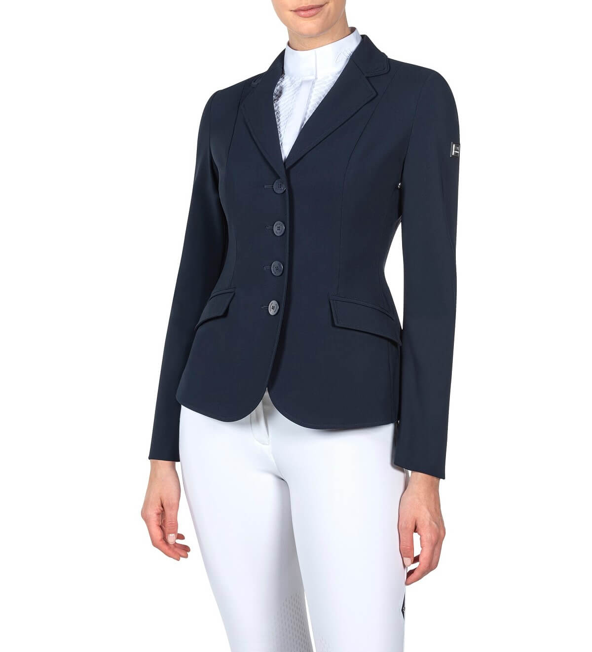 Giacca da competizione Miriamk di Equiline studiata e realizzata per garantire la massima libertà di movimento grazie al suo tessuto doppiato super elasticizzato.