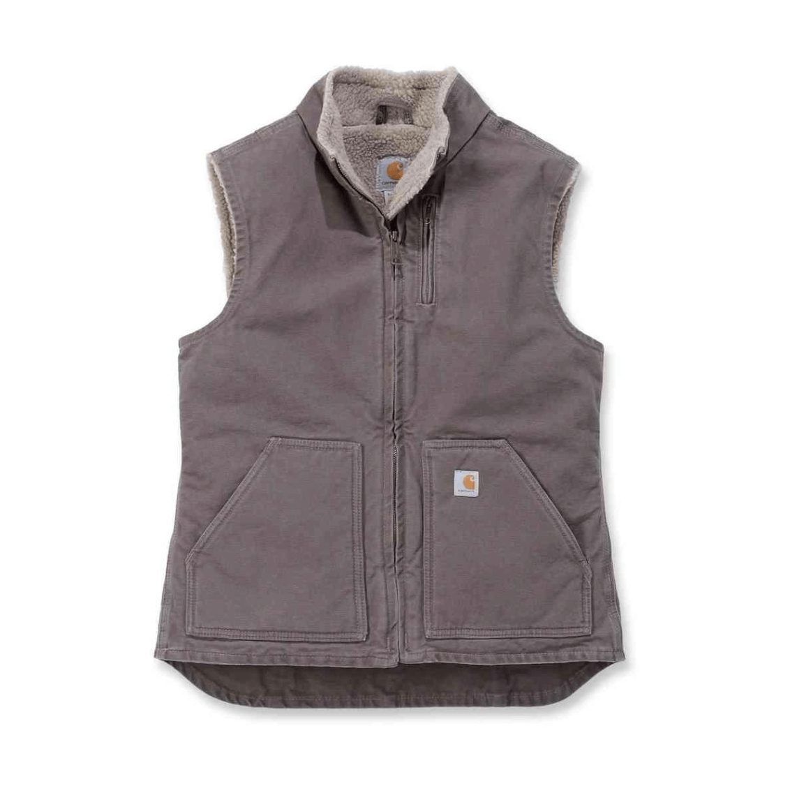 Gilet smanicato donna Carhartt modello Sharpa con imbottitura interna, due tasche anteriori a marsupio e tasca verticale con cerniera.