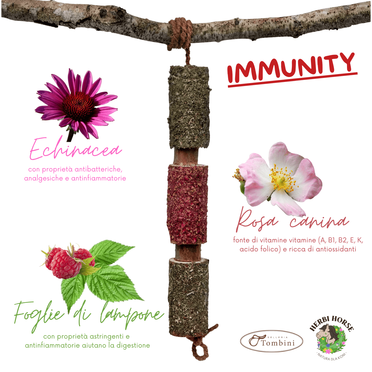 Ingredienti: palo di betulla, blocchi di pino, foglie di lampone, fiori di rosa selvatica, echinacea, oli essenziali (rosmarino, basilico, menta piperita, zenzero, aglio), miele, acqua di sorgente, corda in fibra di cocco.