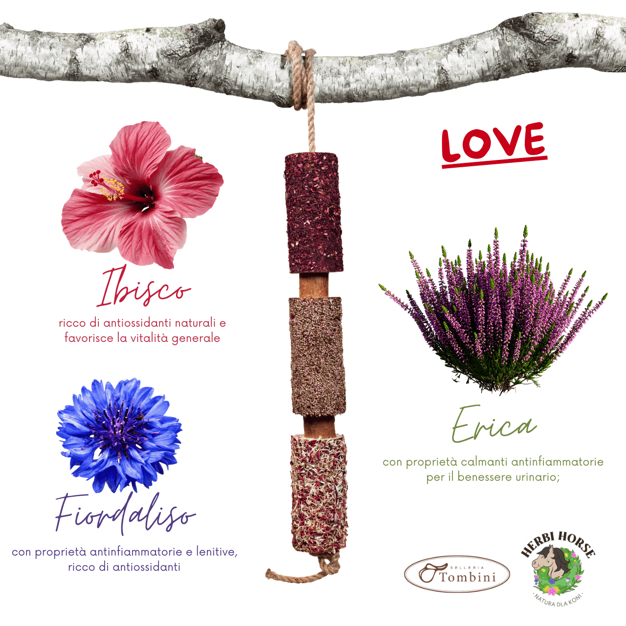 Gioco antistress in legno 100% biologico ed etologico dal profumo di foresta che abbatte la noia nel box e rilassa. Adatto a tutti i cavalli, senza zuccheri aggiunti e senza aromi artificiali o conservanti. Edizione limitata.