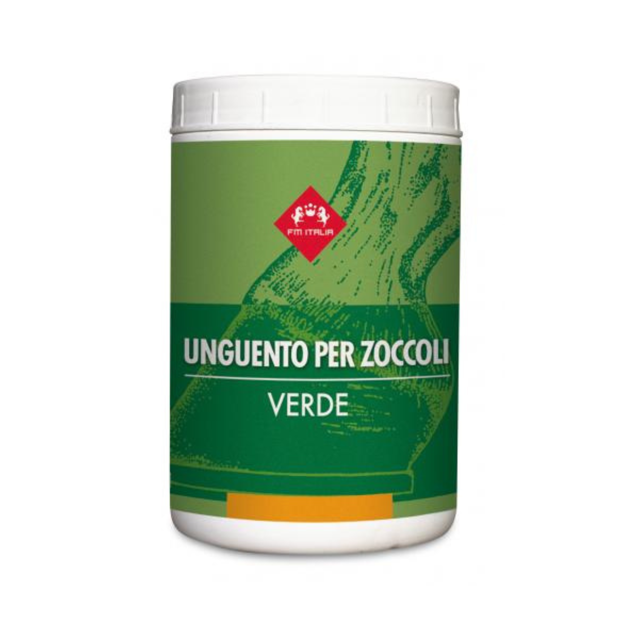 Unguento per gli zoccoli verde a base di oli minerali utili nel mantenimento del giusto grado di elasticità ed umidità dello zoccolo.