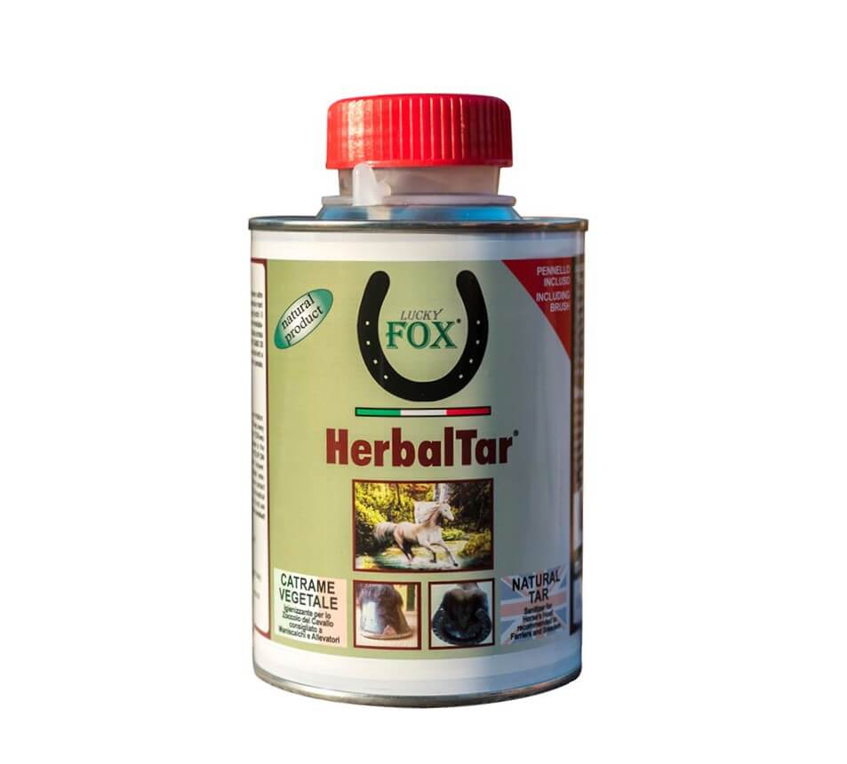 Herbal Tar è un liquido di colore nero a base di catrame vegetale di pino che impedisce che agenti esterni presenti nella lettiera o nel fango indeboliscano lo zoccolo (previene tarlo, marcimento del fettone, ecc.).