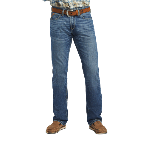 Jeans western da uomo con gamba dritta aderente su fianchi e cosce.