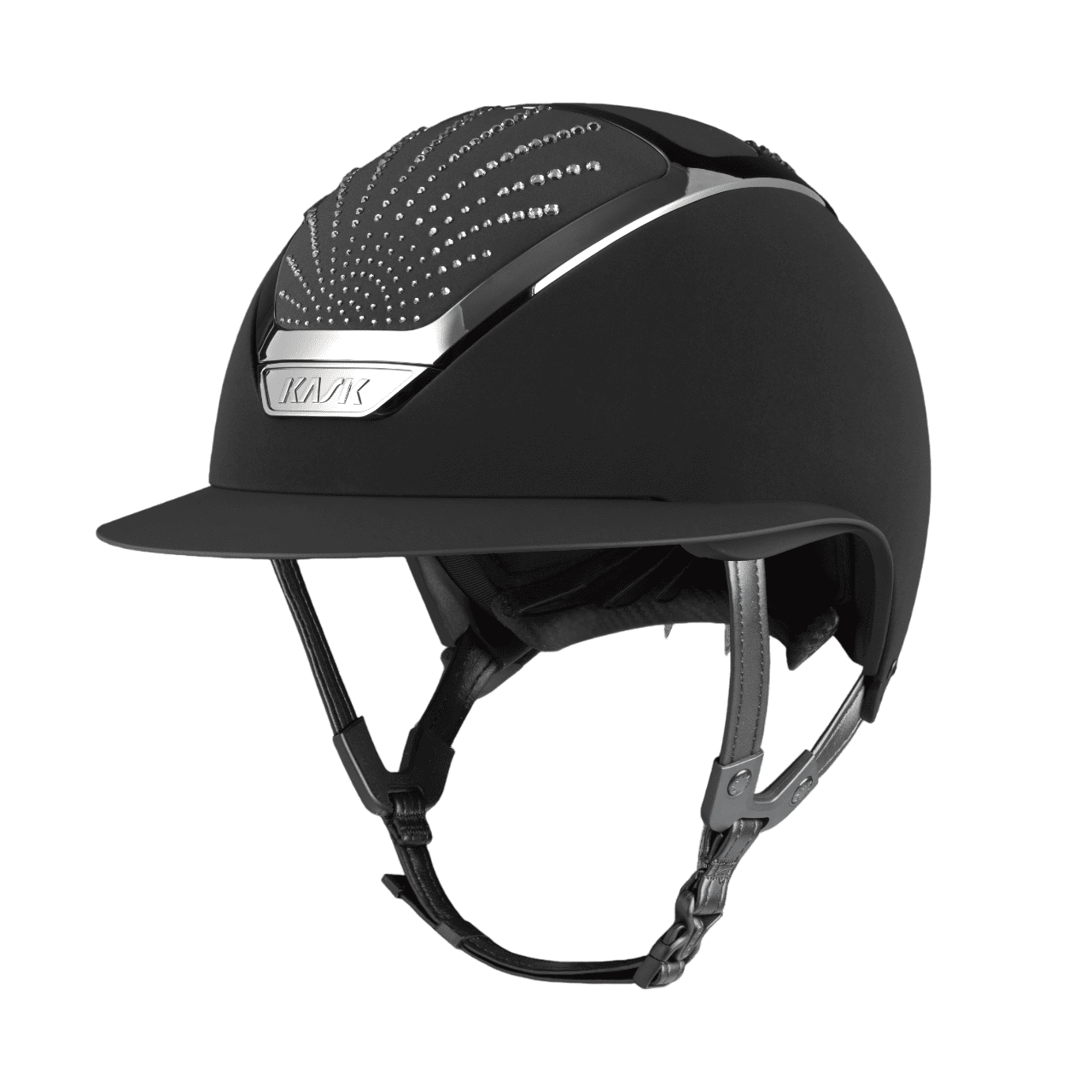 Casco equitazione Kask Star Lady Chrome appartenente alla collezione Anima II Chapter con cristalli Swarovski Graphite nella fantasia Origin.