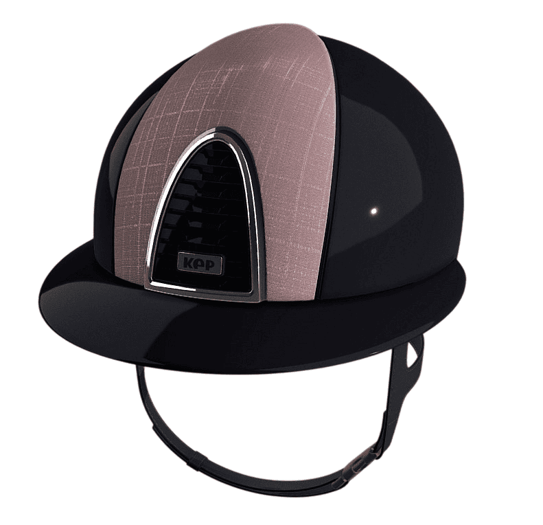 Kep Italia Cromo 2.0 blu lucido con visiera da polo blu lucida e fronte in tessuto speciale rosa galassia con cinturini in pelle blu. Imbottitura interna inclusa nel prezzo, da indicare la taglia nelle note d'ordine.