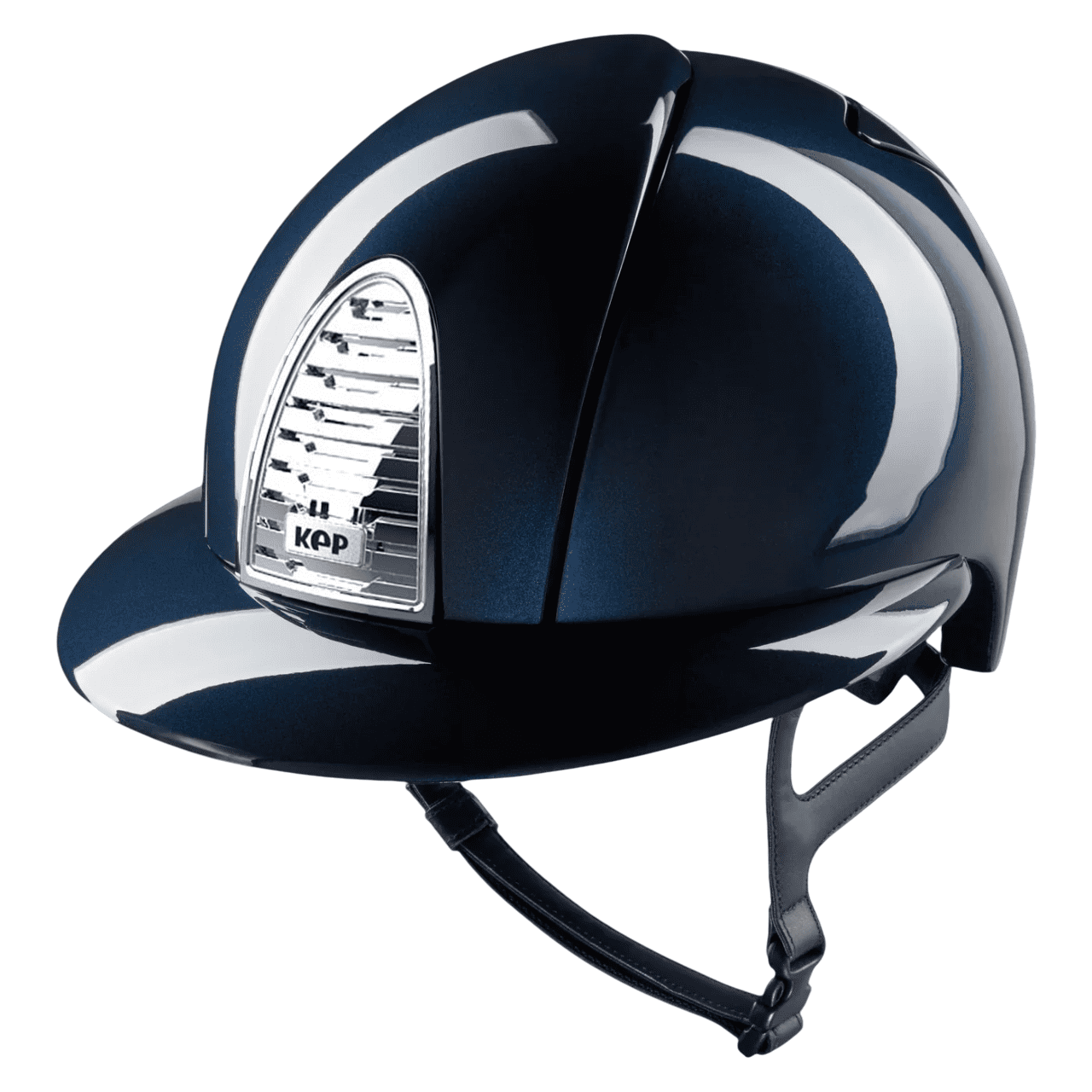 Kep Italia Cromo 2.0 blu shine con visiera da polo e cornice a specchio. Imbottitura interna inclusa nel prezzo, da indicare la taglia nelle note d'ordine.