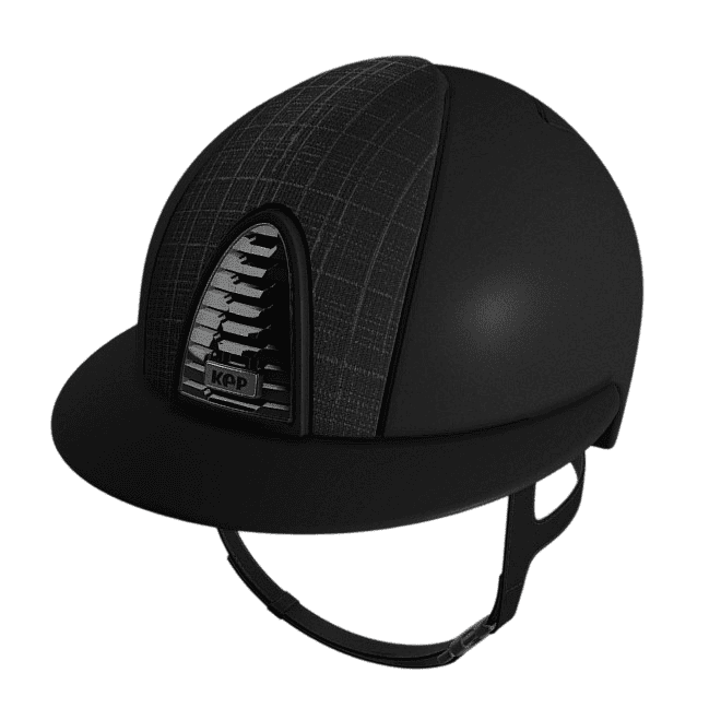 Kep Italia Cromo 2.0 nero opaco con inserto frontale 'Galassia' nero, visiera opaca nera e cinturino in pelle nero. Imbottitura interna inclusa nel prezzo, da indicare la taglia nelle note d'ordine.