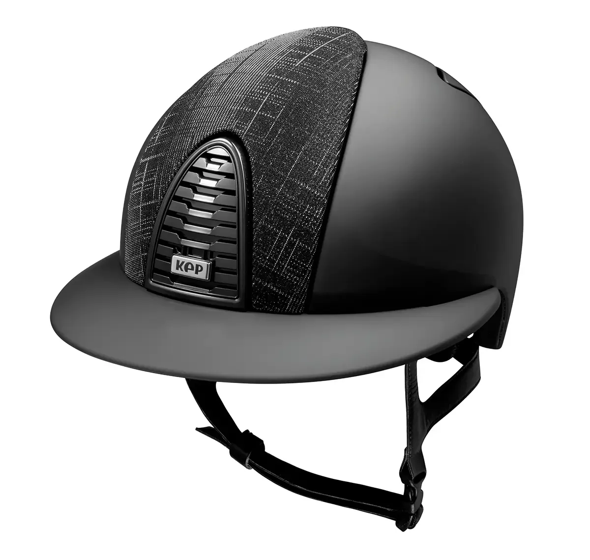 Kep Italia Cromo 2.0 nero opaco con inserto frontale Galassia nero, visiera opaca nera e cinturino in pelle nero. Imbottitura interna inclusa nel prezzo, da indicare la taglia nelle note d'ordine.