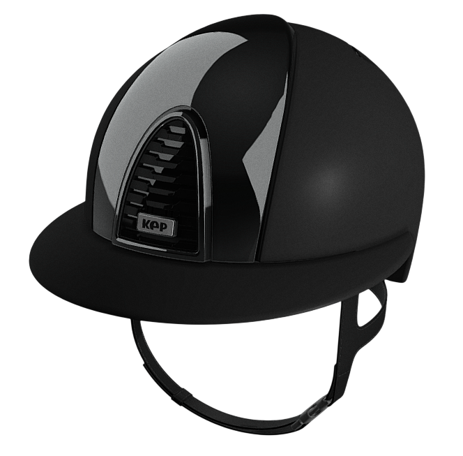 Kep Italia Cromo 2.0 con calotta nera opaca, fronte a specchio e griglia nero lucido. Griglia a specchio e cinturino in pelle nero. Imbottitura interna inclusa nel prezzo, da indicare la taglia nelle note d'ordine