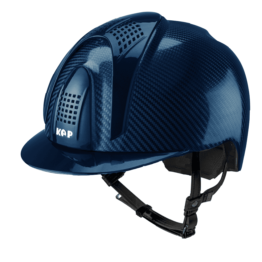 Kep Italia E-light carbon blu lucido con inserti blu lucidi e cinturino in eco-pelle blu scuro. Imbottitura interna inclusa nel prezzo, da indicare la taglia nelle note d'ordine.