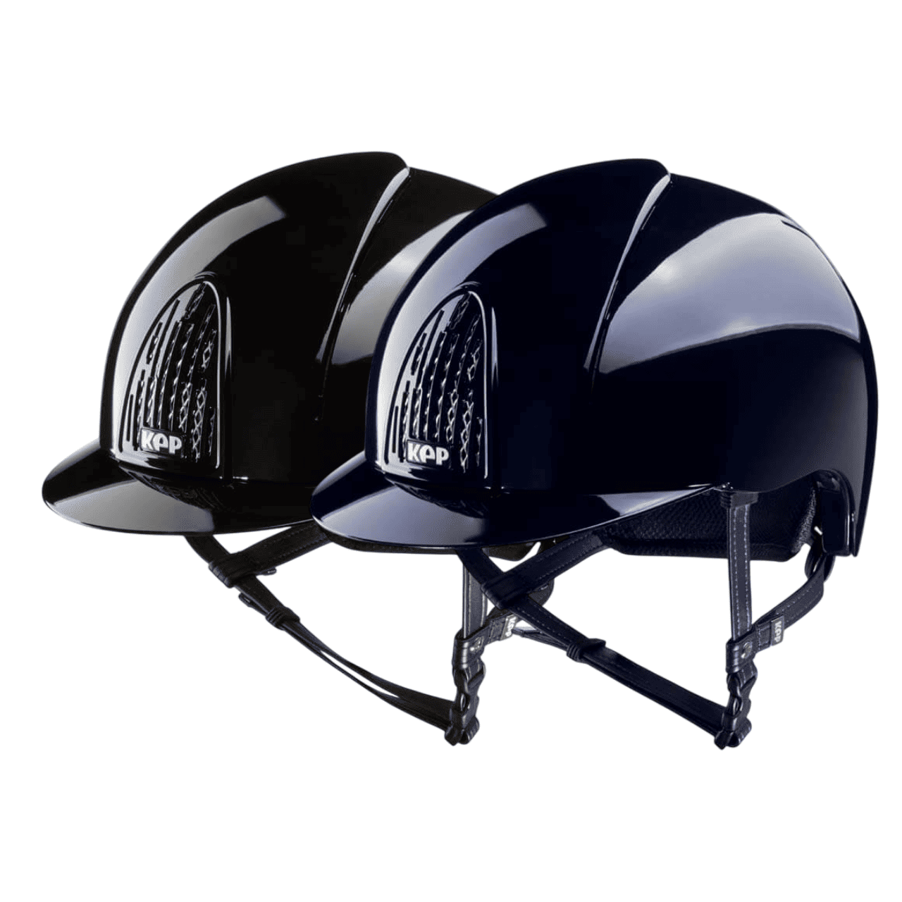 Kep Italia modello Smart nero o blu con finitura lucida, visiera classica (stretta) e cinturino in pelle. Imbottitura interna inclusa nel prezzo, da indicare la taglia nelle note d'ordine.