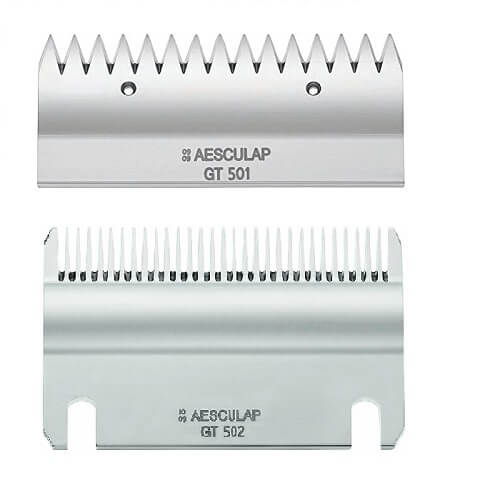 Coppia di pettini Aesculap GT 501/502 adatte a tosatura di cavalli, cani di grossa taglia e bovini.