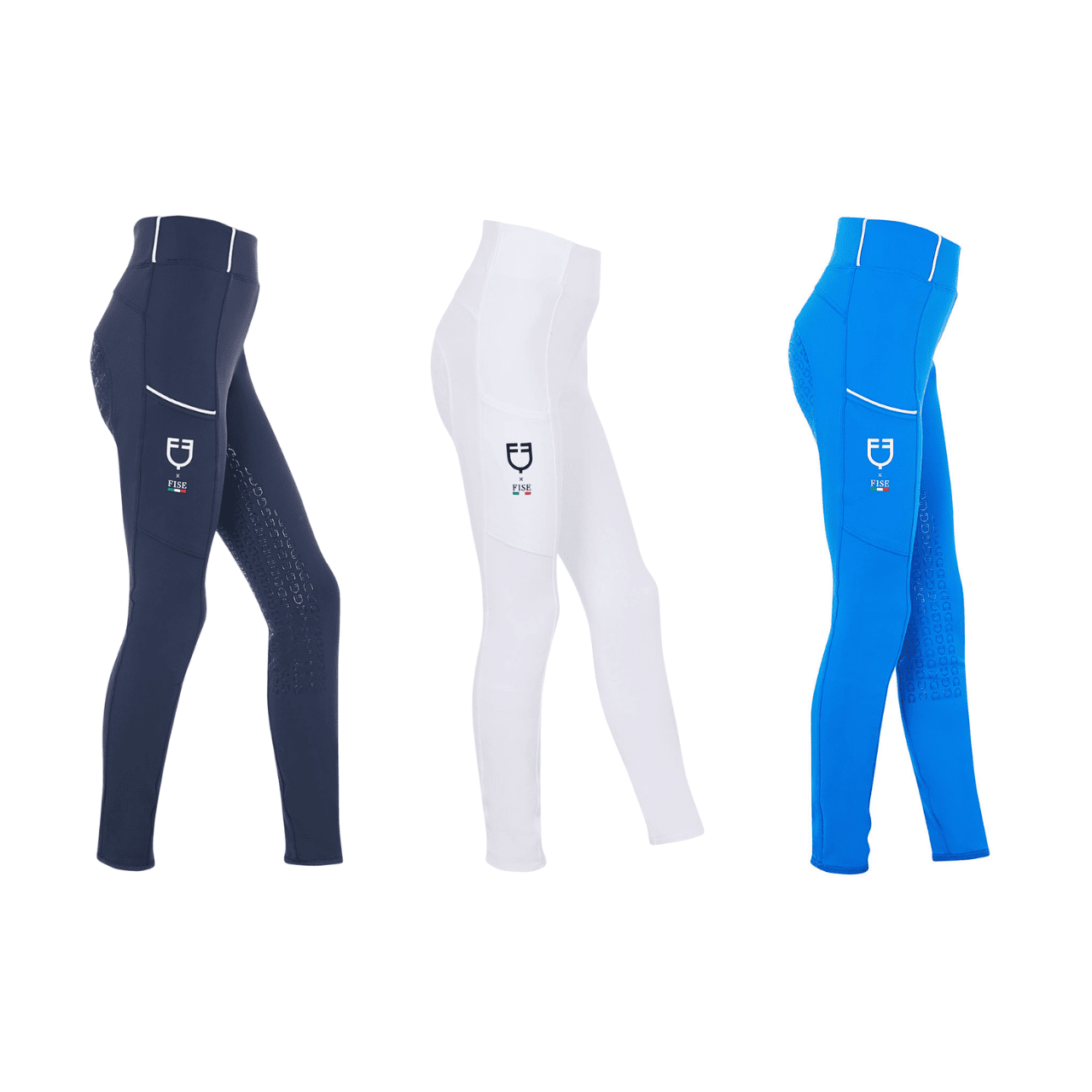 Leggings Equestro X FISE da bambina con full-grip in silicone e logo. Realizzati in tessuto tecnico elasticizzato.