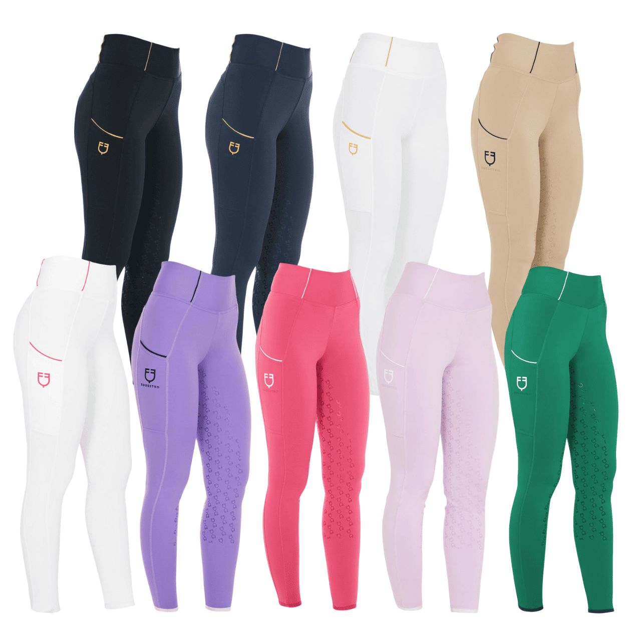 Leggings Equestro da donna slim fit realizzati intessuto tecnico elasticizzato e traspirante che aiuta a regolare la temperatura corporea e favorisce massima libertà di movimento e il massimo comfort.