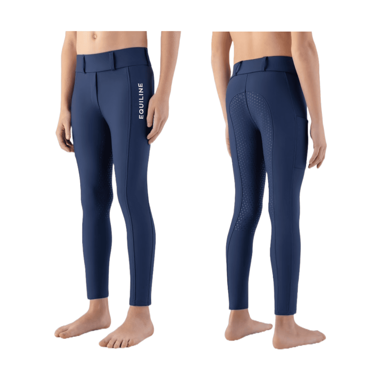 Leggings invernali da bambina di Equiline a vita alta con full grip e morbida fodera in micropile che mantiene il calore durante le giornate più fredde.