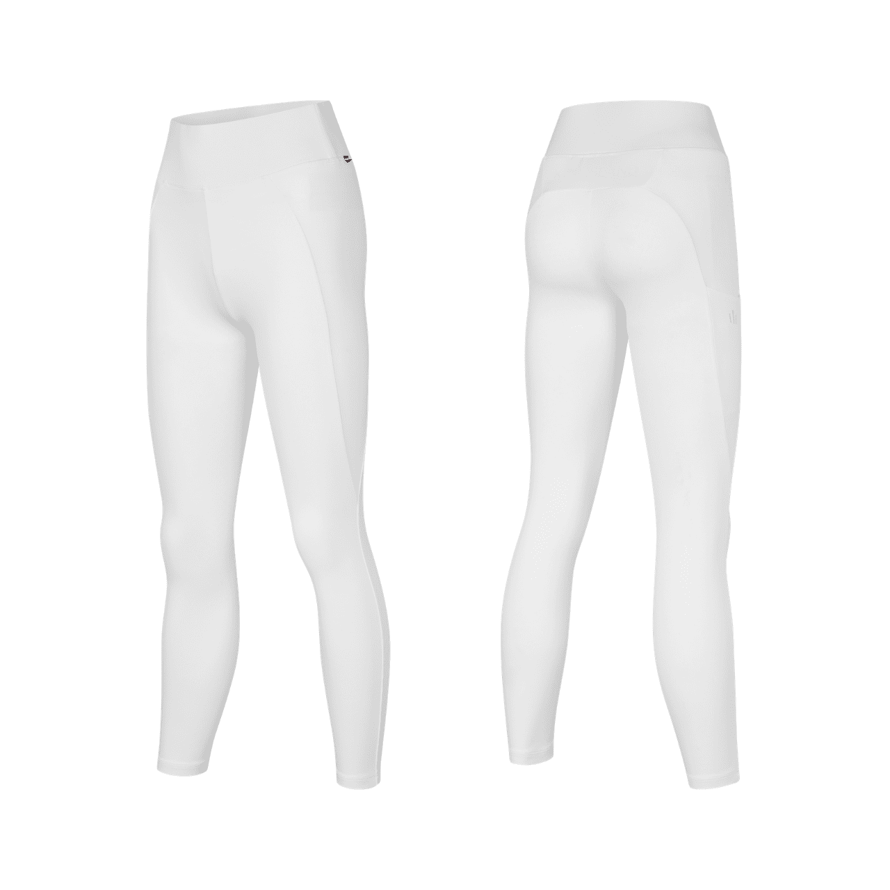 Leggings bianchi da equitazione realizzati in tessuto a maglia ad alte prestazioni che offrono traspirabilità, gestione dell'umidità e mantenimento della forma a lungo. Il materiale liscio e leggero garantisce comfort per tutto il giorno, rendendoli i leggings perfetti per le gare.