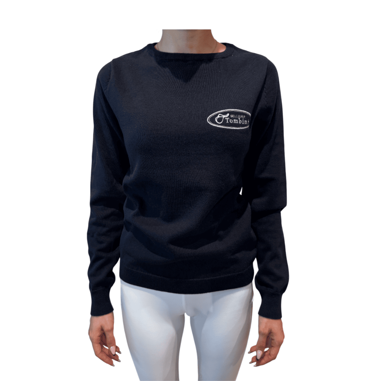 Maglioncino in cotone leggero da donna blu con logo Tombini ricamato a contrasto.